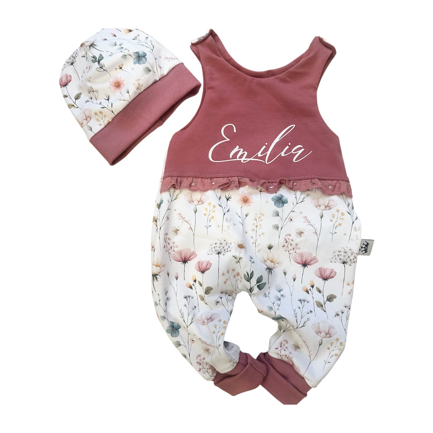 Strampler Flower Bouquet mit Namen und Mütze